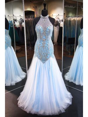 - Robe De Soirée Bal Scintillante Luxe Longue Bleu Azur Tulle Col Montant Pearl StrassPrix Spécial 219,00 € Prix normal 1 199,00 €